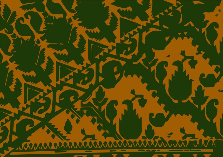 Jamdani is a fine figured cotton muslin fabric woven in simple pit looms in the delta lands around Dhaka, Bangladesh. The quality of the traditional fabric, sometimes as delicate as a shadow, depended on a particular type of locally grown cotton. Weavers evolved a specific repertoire of geometric motifs representing fruit, flowers, leaves and creepers worked in by hand in white, coloured or metallic thread as a discontinuous supplementary weft. One of the supreme achievements of muslin weaving, Jamdani was historically a luxury fabric, requiring intense concentration on the part of the weavers in counting threads to reproduce sometimes tiny regular patterns. Outstanding pieces could take two people six months to weave; recent attempts to reproduce historic Jamdani have taken even longer.