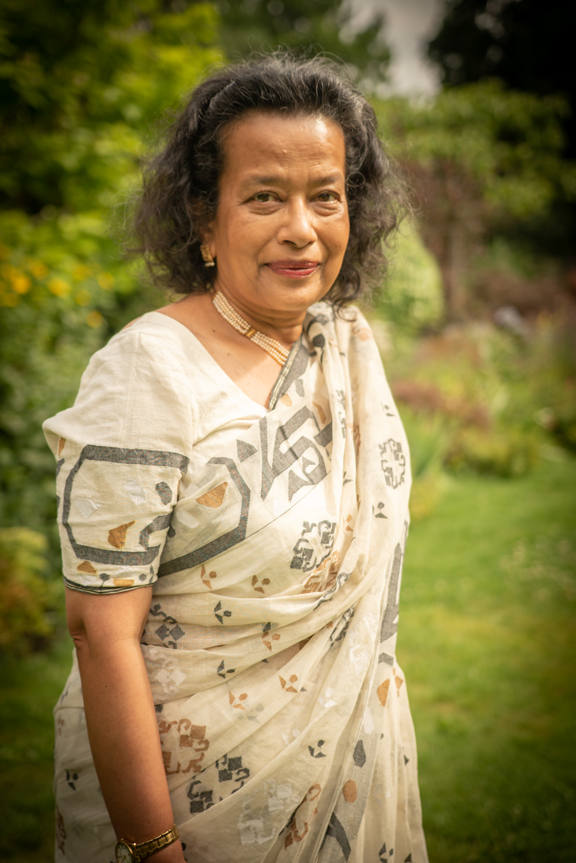 Muslin Trust undertook 24 oral history interviews with Bangladeshi women residing in the London Borough of Merton who arrived in England in the 1960s and ’70s. These women expressed their cultural heritage by wearing Jamdani textiles and other heirloom saris made in Bangladesh. The 1970s saw the emergence of a new nation amongst the leftovers of Colonial rule and Partition of India, with the East Pakistan period dividing neighbours and friends, so coming together became an innate need for the newly identifying Bangladeshis. Their sense of self and belonging were expressed through the ritual of wearing a Jamdani sari; to reconnect with the culture they left behind, as part of a tradition that extends for over a millennium.