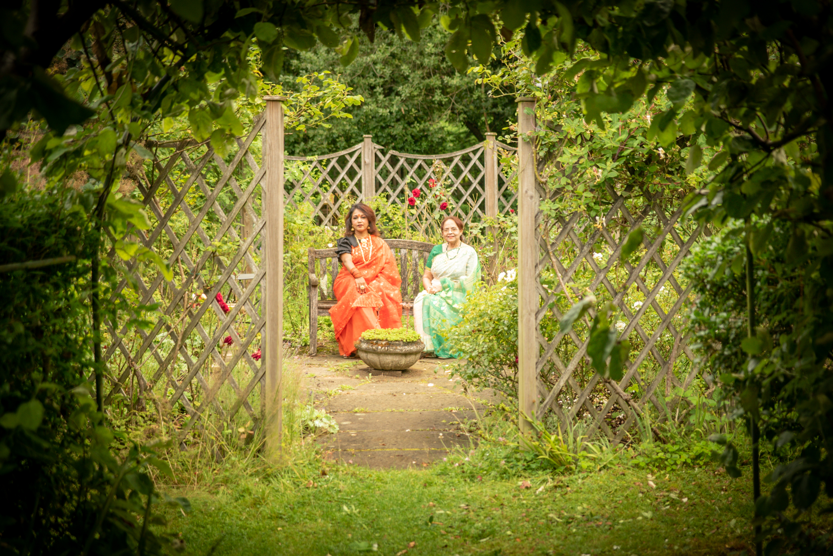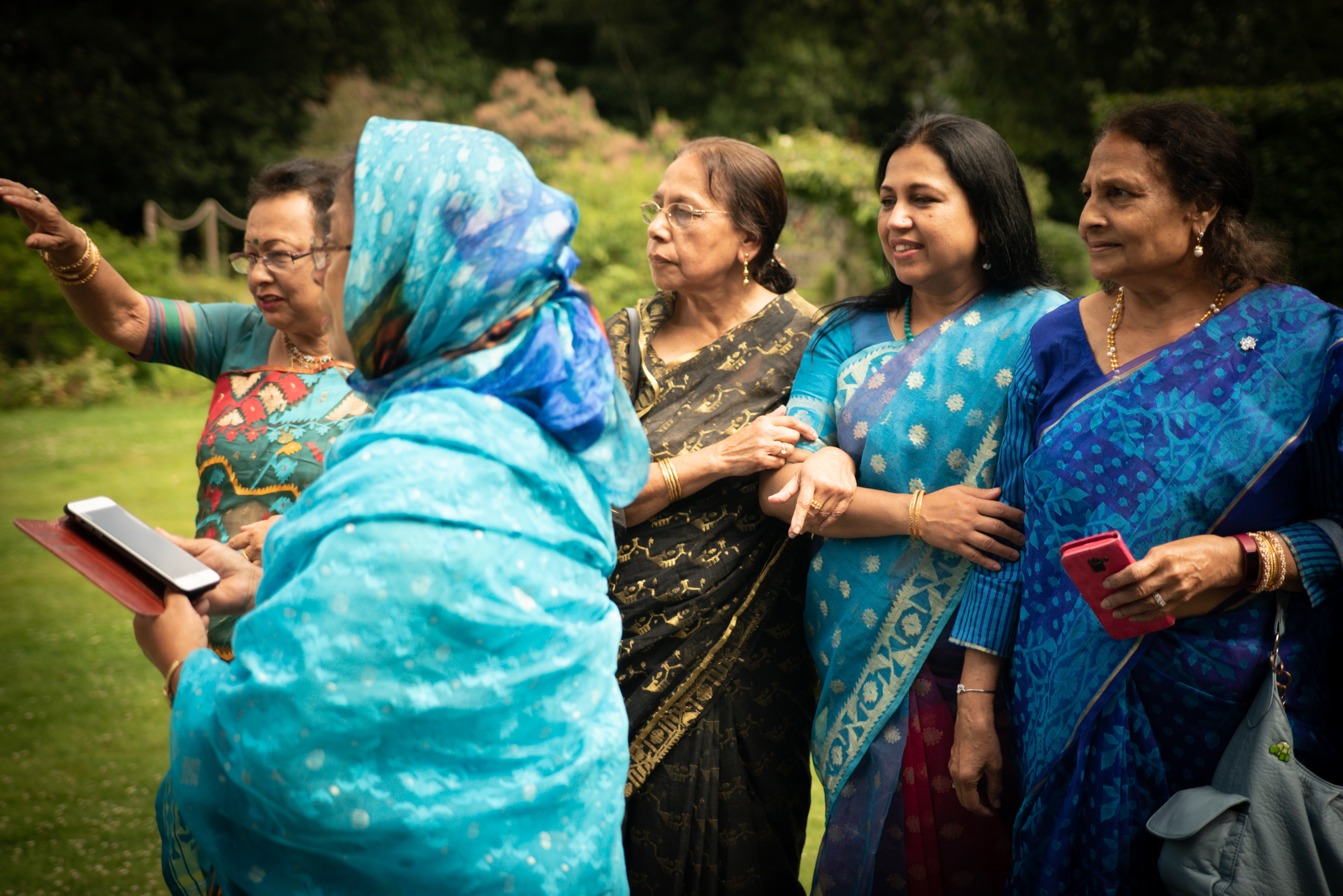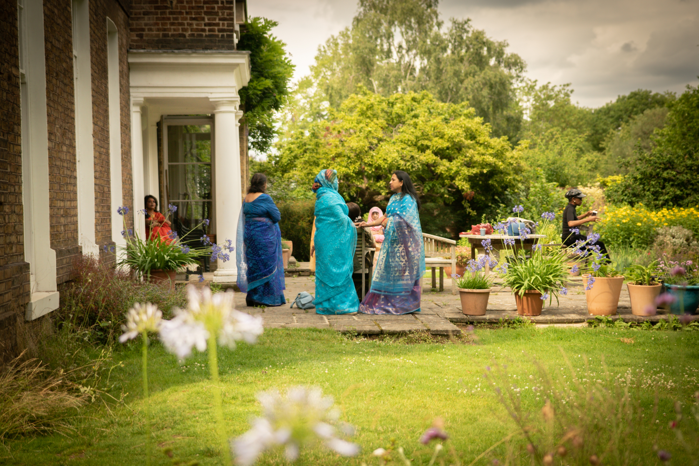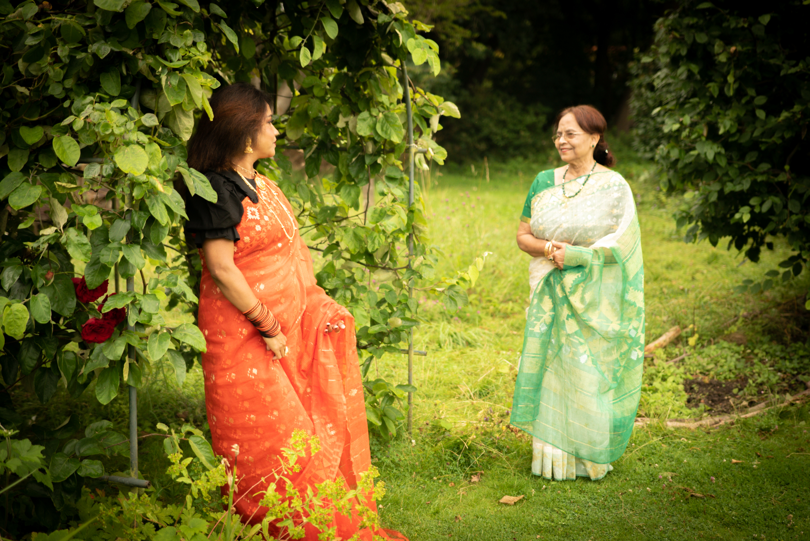 Photographs (above): 24 partcipants and their friends show and share their Jamdani saris during photography days held at Bell House and Morden Hall Park (2021)