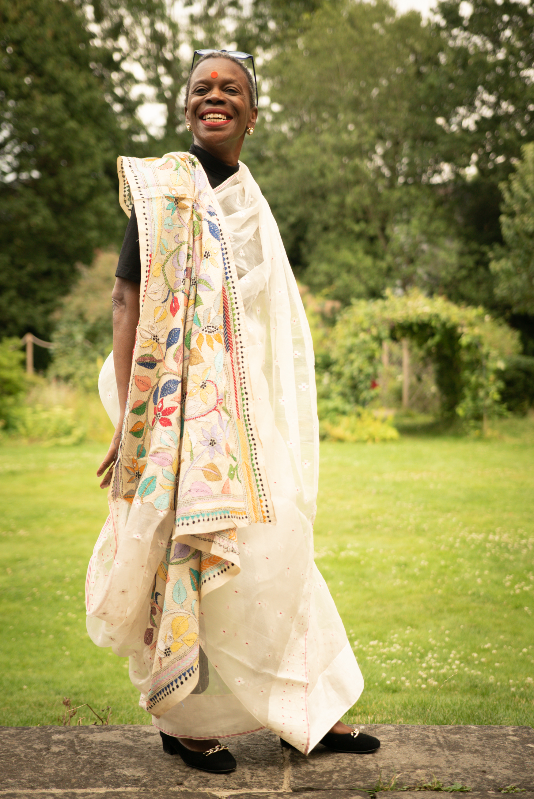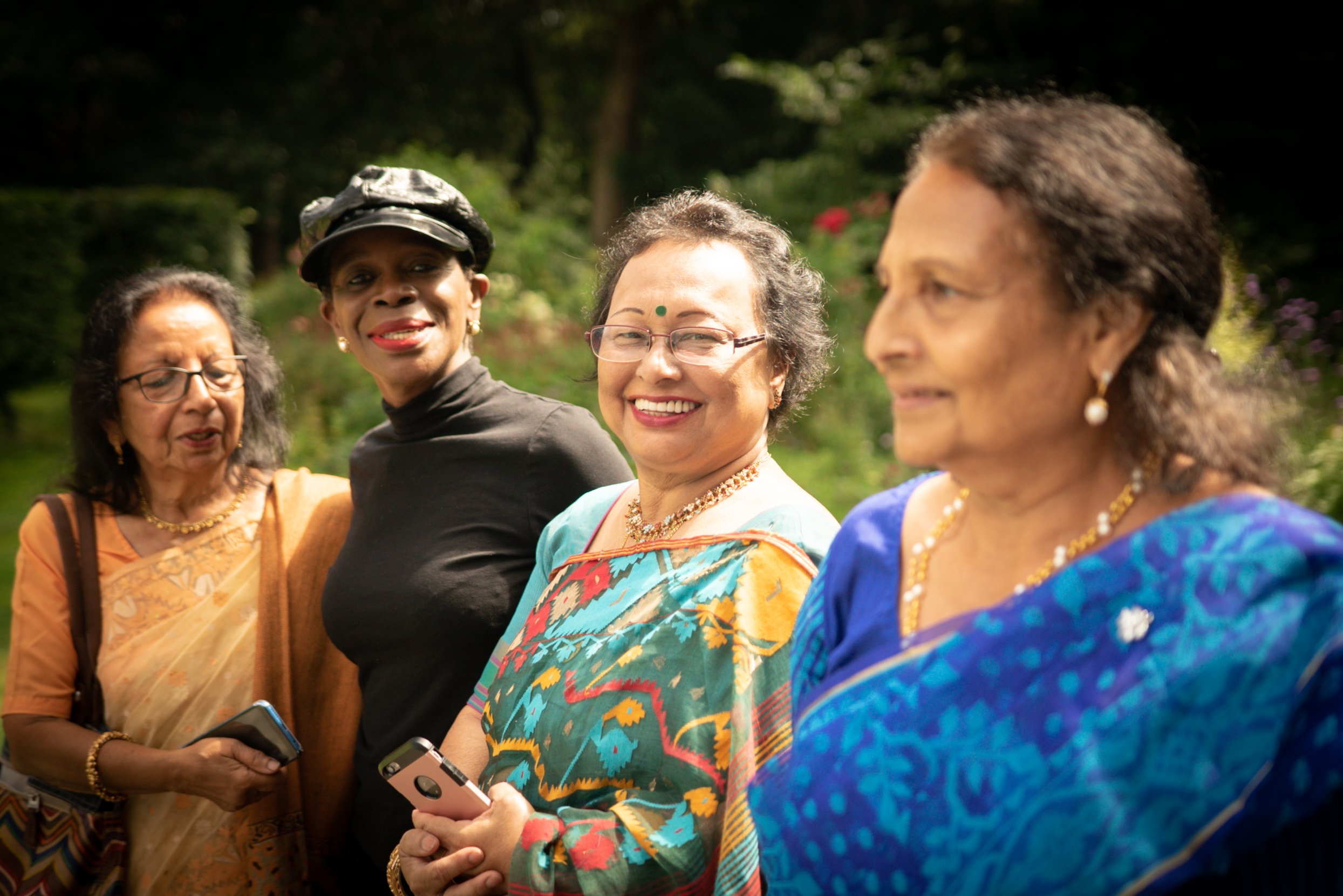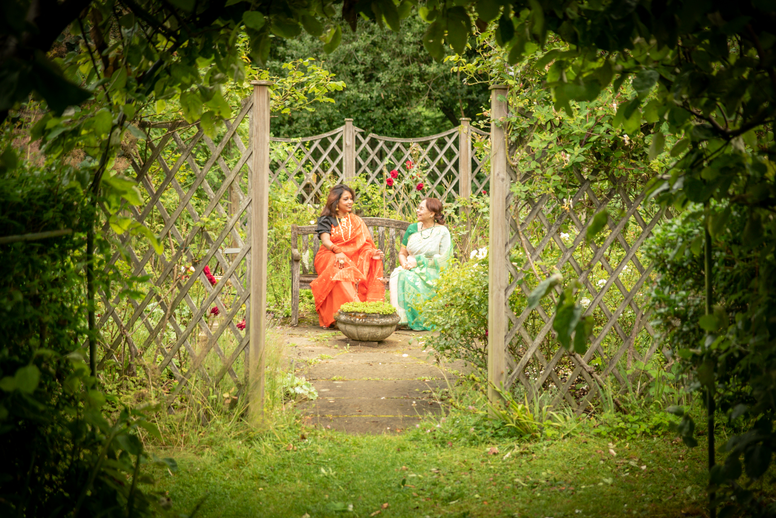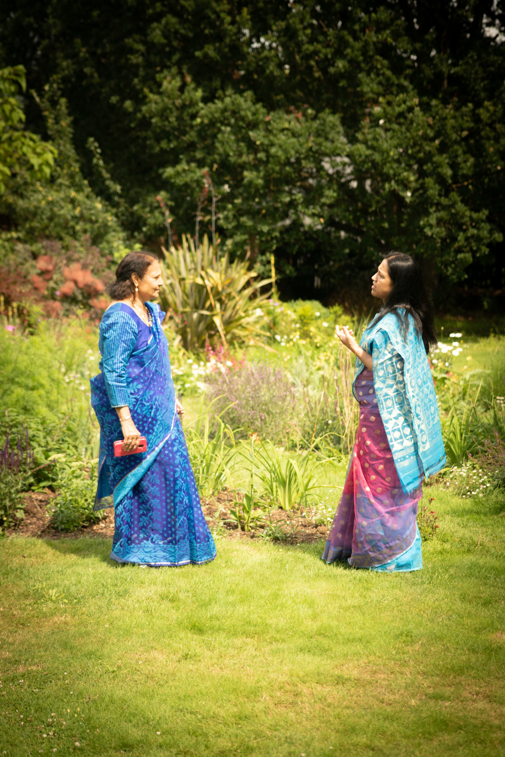 Photographs (above): 24 partcipants and their friends show and share their Jamdani saris during photography days held at Bell House and Morden Hall Park (2021)