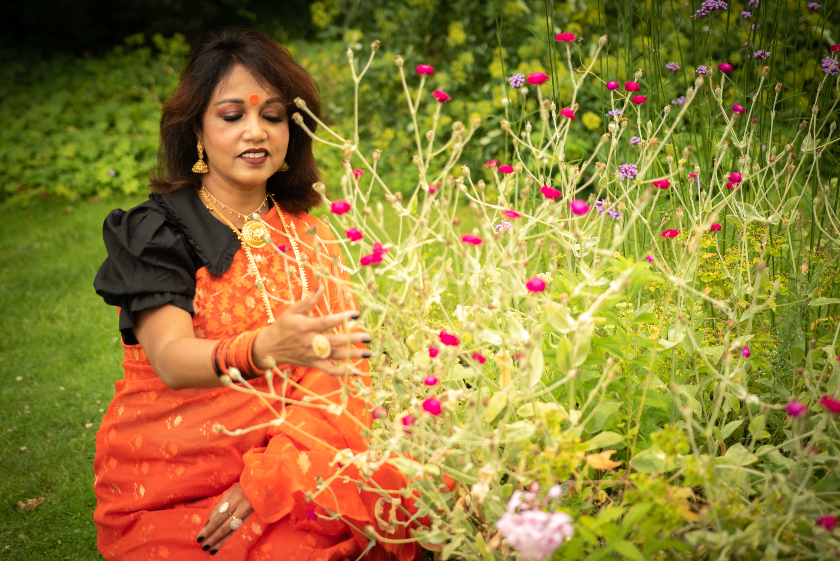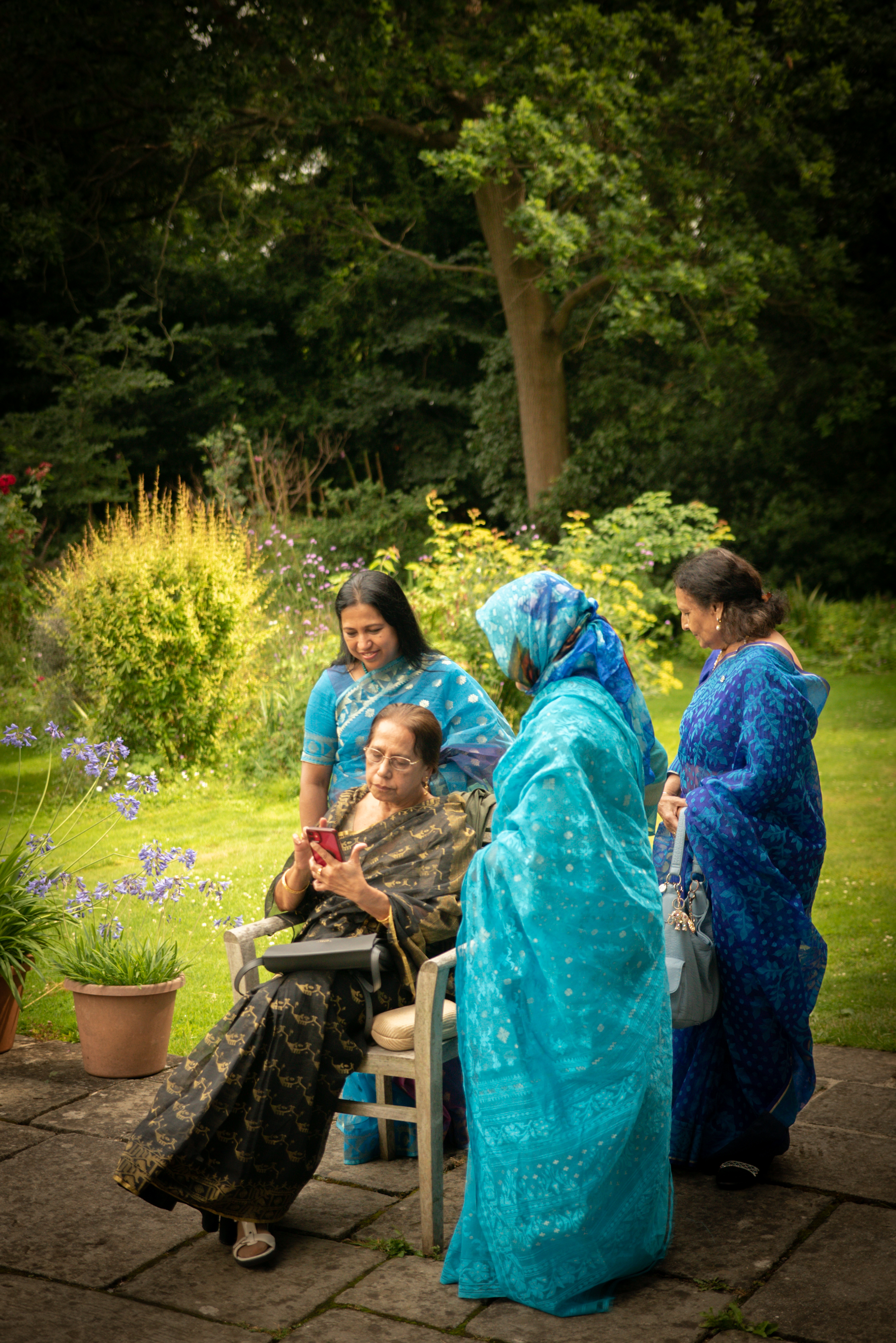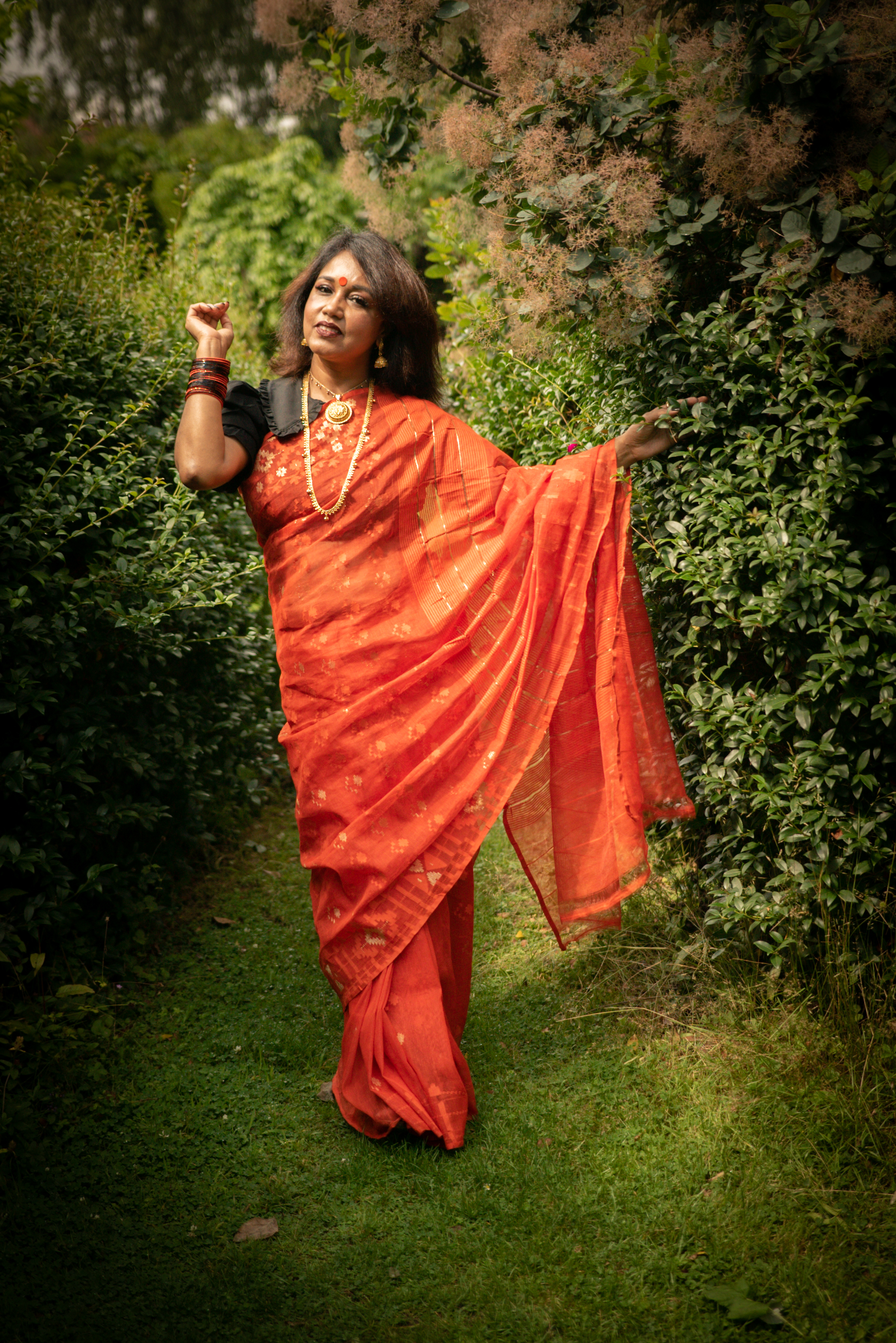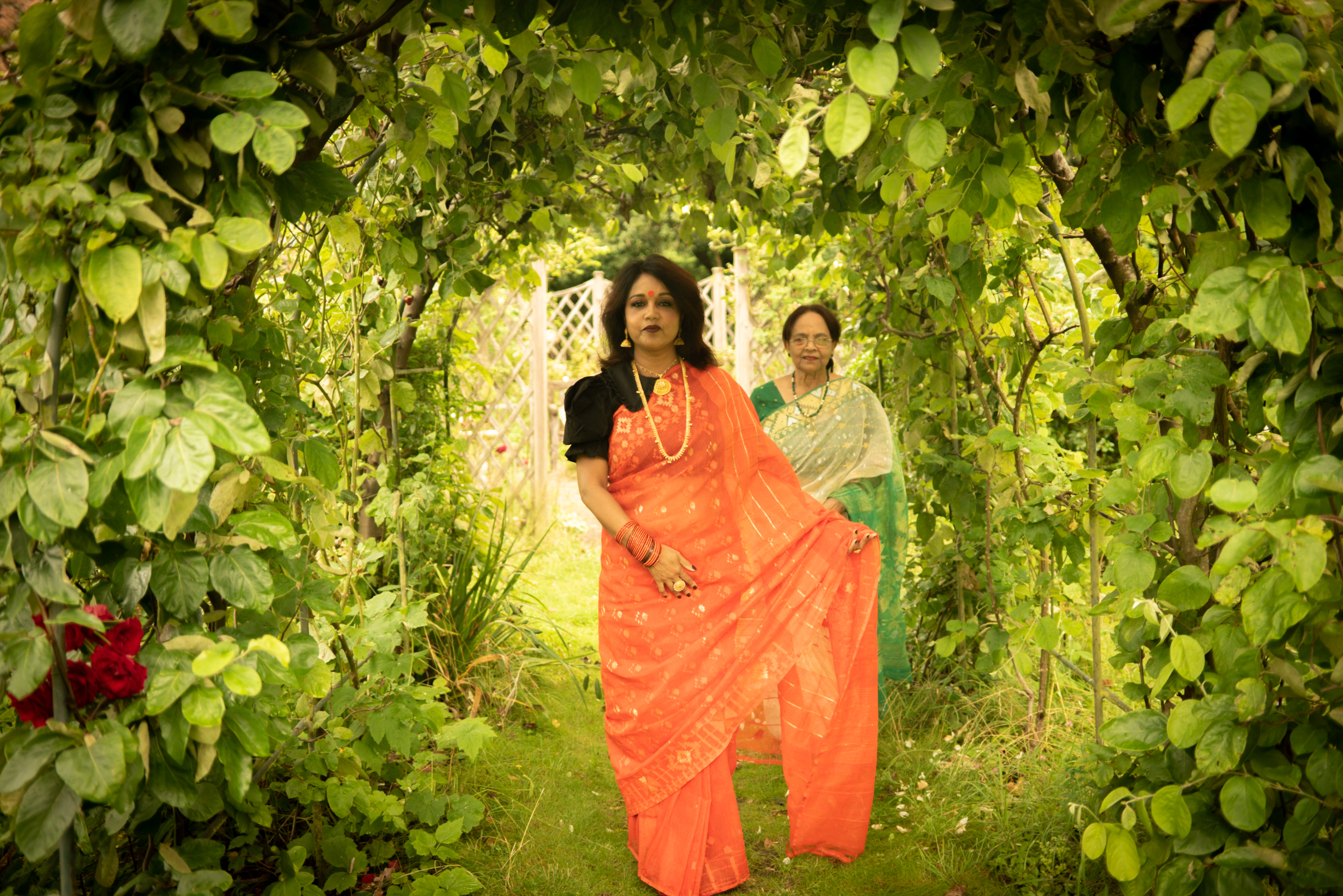 Photographs (above): 24 partcipants and their friends show and share their Jamdani saris during photography days held at Bell House and Morden Hall Park (2021)