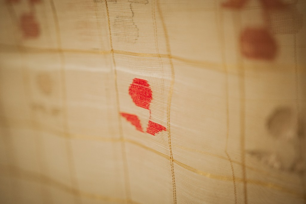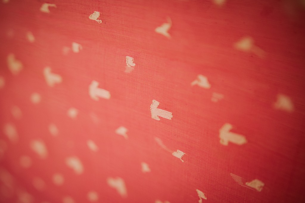 Photographs (above): details of participants’ Jamdanis taken during photography days held at Bell House and Morden Hall Park (2021)