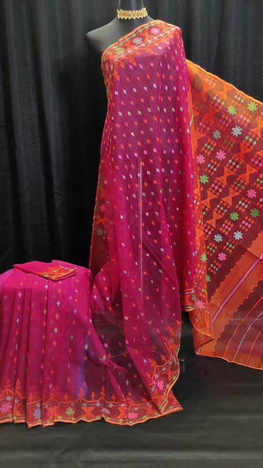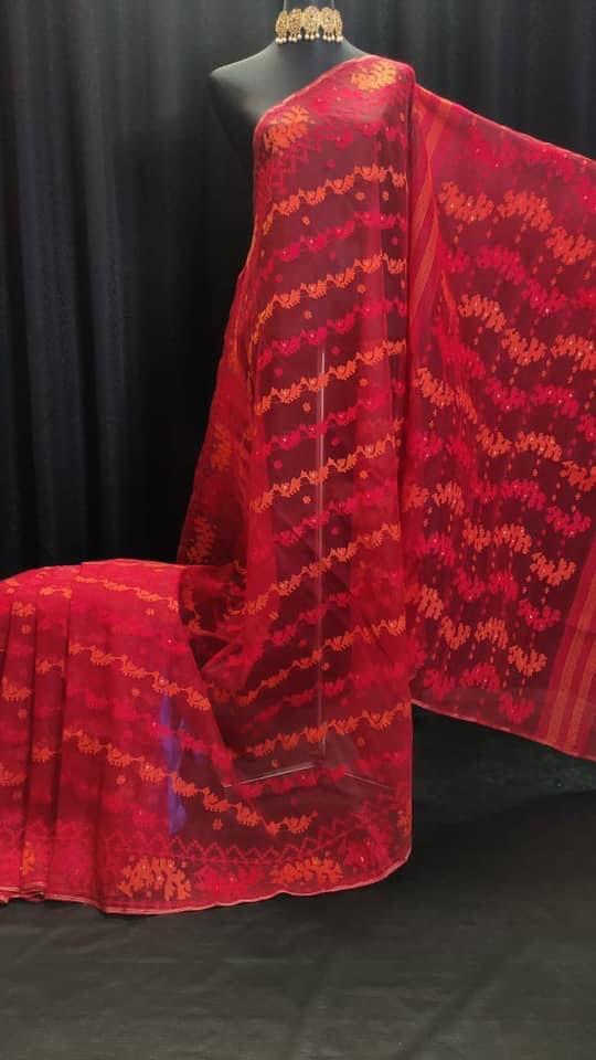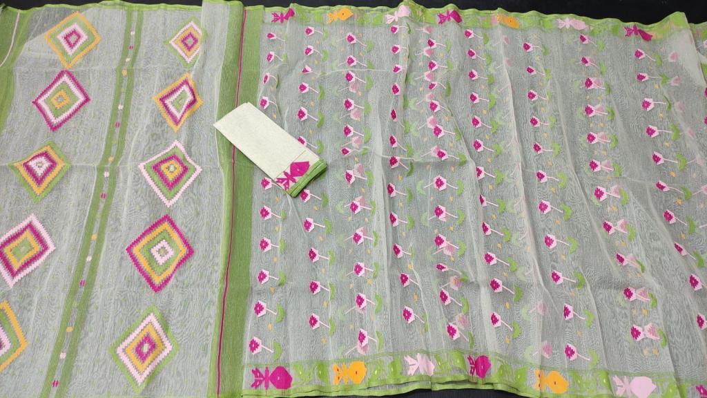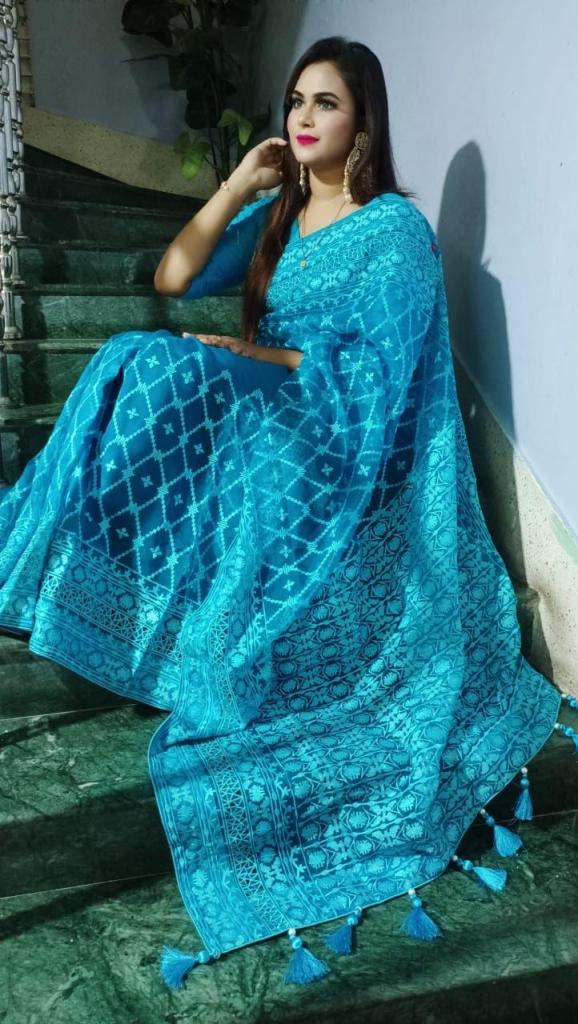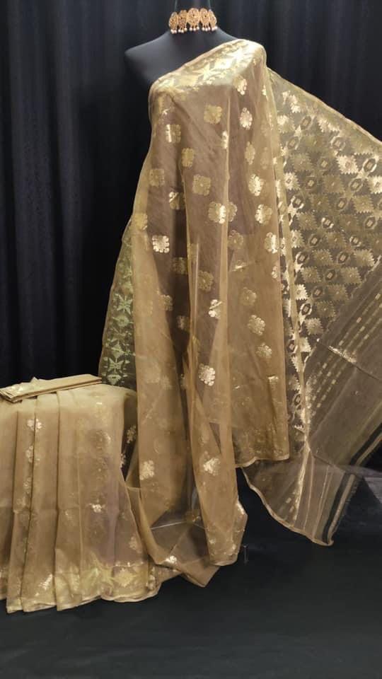 I never a child, but in a fair, there’s so many fairs happening in Bangladesh. Sometimes they show a machine where the Jamdani is made. Not at a younger age, but when I went to Naranyanganj or Sonargaon where the main Jamdanis are handmade, not the machine made Jamdani. So I have seen ‘factories’ of weavers or Tahthi (Bengali = weaving loom), homemade Jamdanis in a Tahthi. I’ve been to their house. How much hard work they are doing to made Jamdani by hand, so yes I have seen the weavers. The earliest memory is from my mother, she use to say that she liked to wear the Jamdani sari and showed me one, saying ‘this is called a Jamdani.’